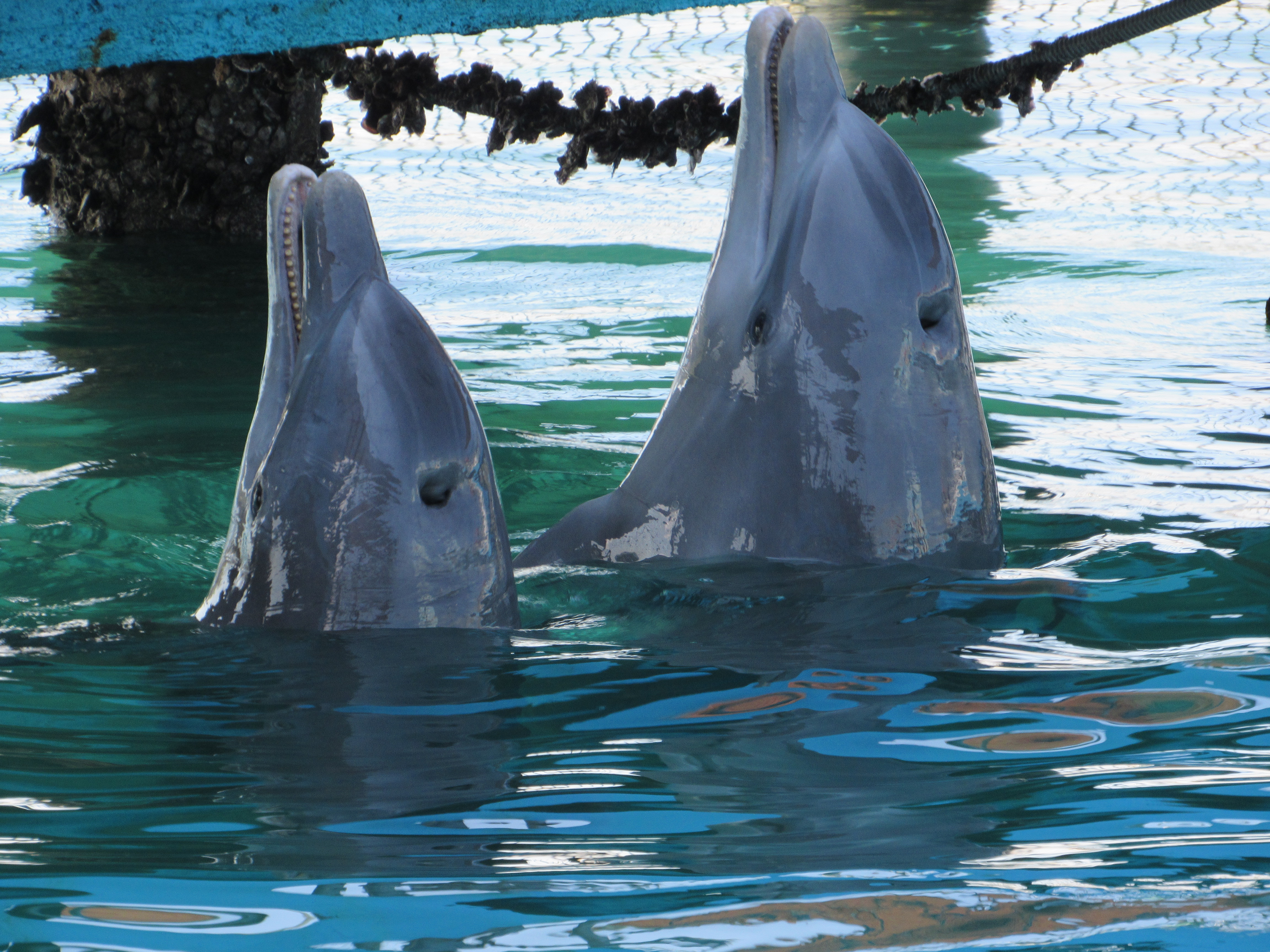 After about an hour’s drive, we finally made it to the place where we caught a boat to take us to the dolphinarium. It is a complex built in the middle of the bay on several small islands. It has several different “pools” with a couple dolphins in each one, a restaurant, gift shop, a bar and two areas for different types of shows – a sea lion show and a dolphin show.