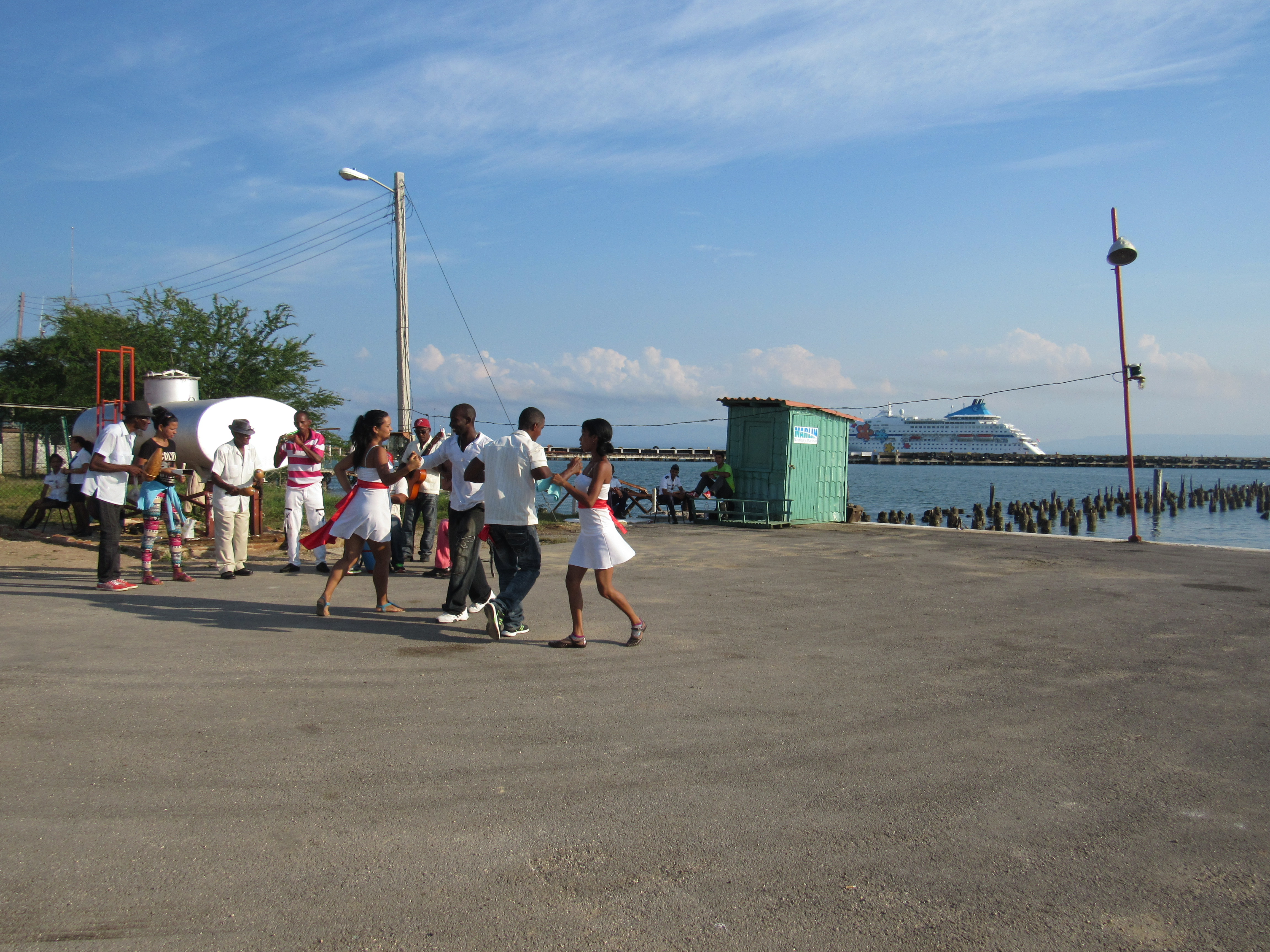 Antilla, Cuba is a small village on the coast of Cuba. For me, this was going to be an exciting day filled with wonder. I had a very special tour arranged that day, so everyone in tours met in the lounge and got our bus assignments. Then we headed off to load into the tender boats that would carry us to shore. There is not much at this post – just a place to dock a couple of the tenders. A group of locals who were playing Cuban music and dancing greeted us as we docked in Antilla.